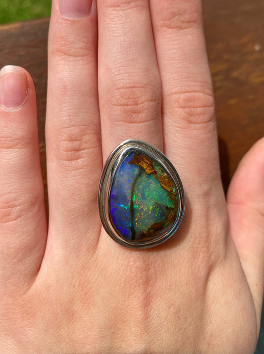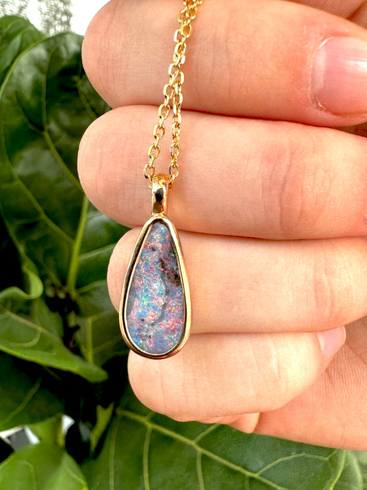 Queensland Boulder Opal 9ct Yellow Gold Drop Earrings