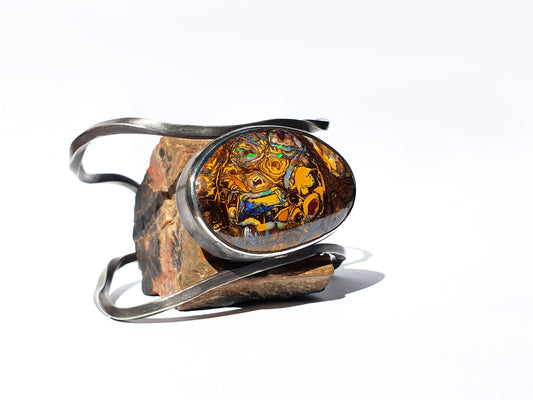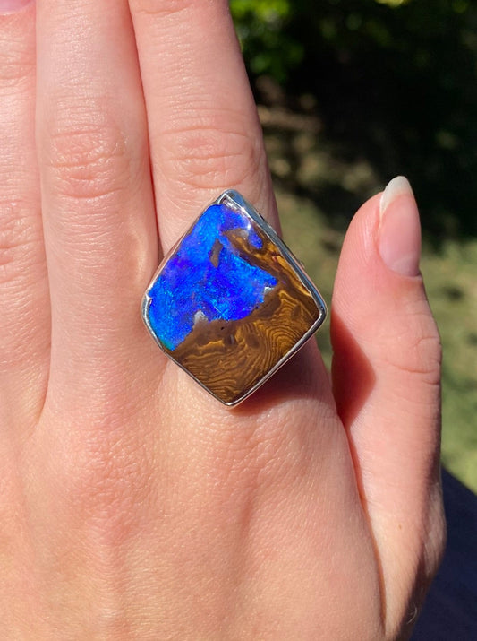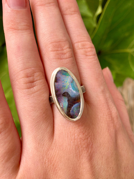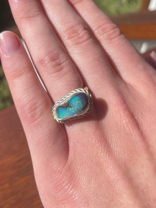 Sold outDeep Sea Glisten Boulder Opal Ring