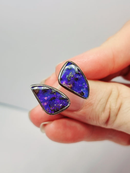 Double Cosmic Space Flare Solid Opal Ring