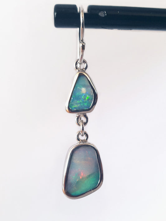 Sold outDouble Opal Drop and Silver Earrings