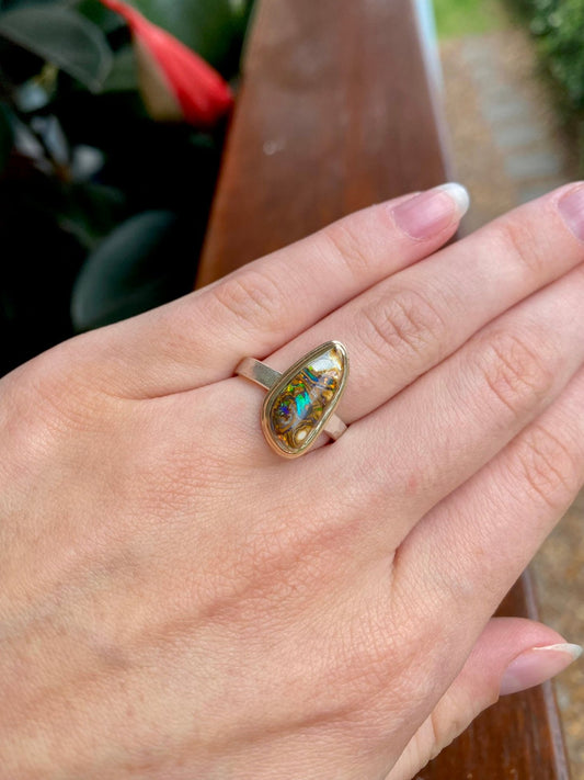 Earth from Afar Boulder Opal Matrix Gold and Silver Ring