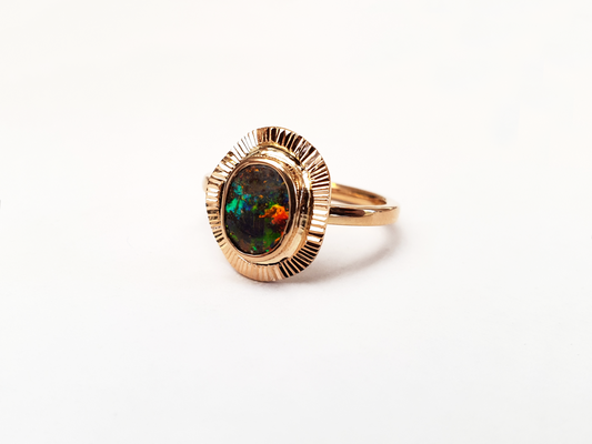 Fringe Ring Boulder Opal 22ct Gold Jupiter