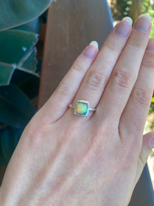 Galactic Glisten Opal and Silver Ring