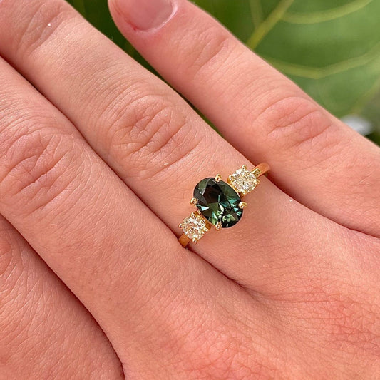 Green Lagoon Australian Sapphire and Diamond Ring