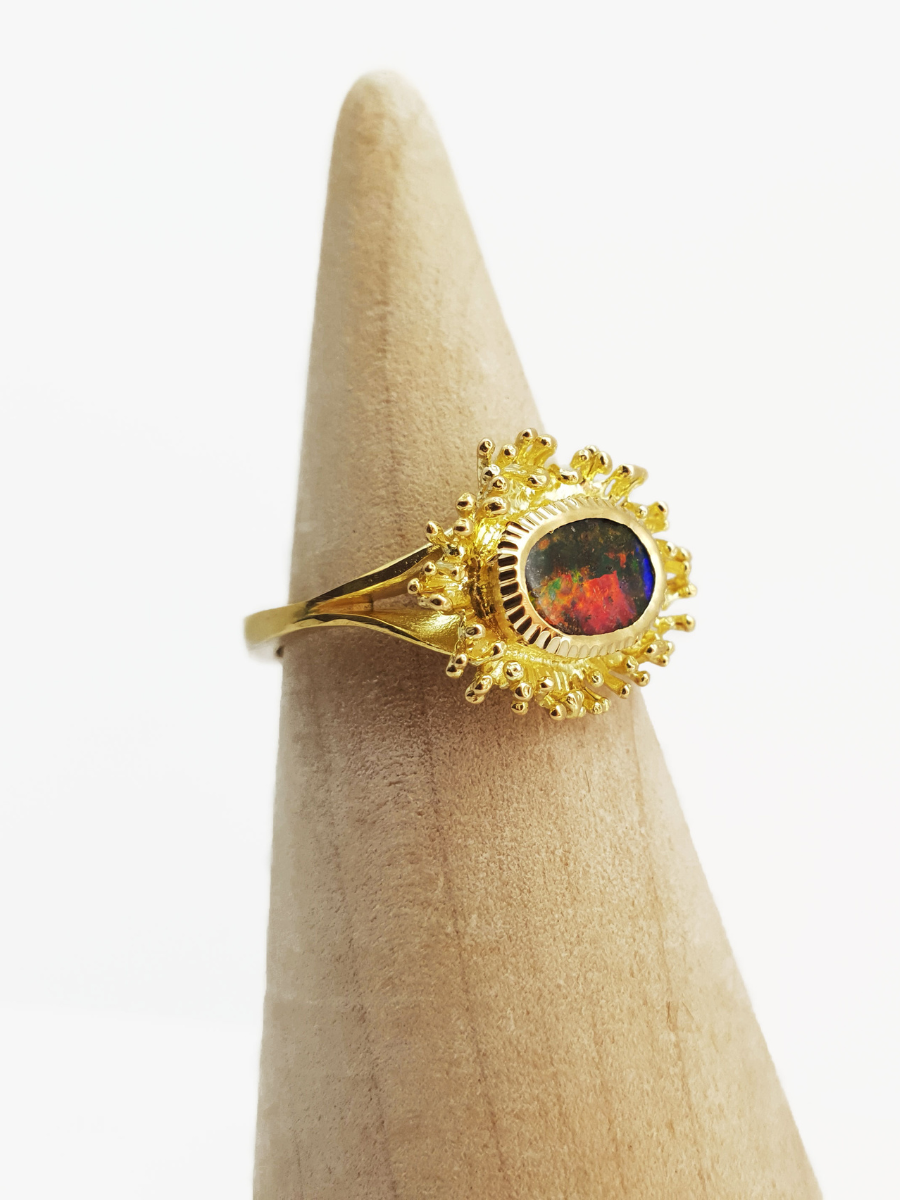 Aurora Fringe Gold Opal Ring
