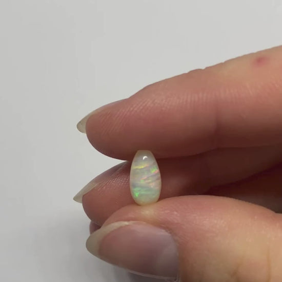 Indulge in the elegant allure of this opal. With glowing colours reminiscent of light passing through crystal clear sea water, evoking the beauty of the ocean floor. Its small, tear drop shape and slightly transparent appearance highlight this gem is a true masterpiece of nature.